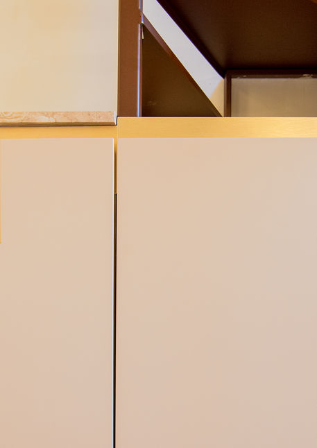 Un projet qui unit élégance et fonctionnalité: les tonalités chaudes du marbre tigré oriental, du bois, et les murs neutres créent ainsi un équilibre raffiné et accueillant. Dès l’entrée, les nouveaux escaliers “Encastrement” au design contemporain, deviennent protagonistes et dessinent l’espace avec rythme et légereté. En montant, avant de rejoindre la terrasse avec vue sur les toits vénitiens, nous découvrons de nouvelles perspectives sur la double hauteur. Chaque détail est étudié avec soin, unifiant matéraiux nobles, miroirs antiques et lumière d’auteur dans une ambiance armonieuse et sofistiquée, où chaque élément dialogue avec l’autre et avec le contexte dans une continuité parfaite.